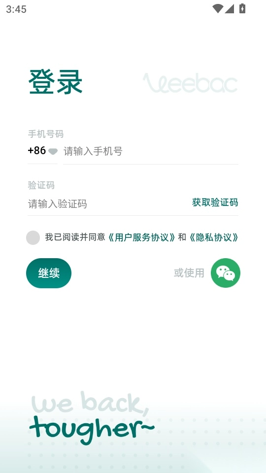 2.在登录界面输入手机号与验证码后,点击“继续”按钮进入程序
