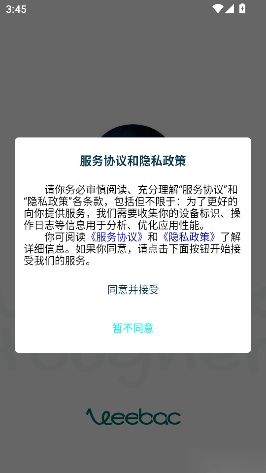 1.首先打开软件阅读协议和隐私政策后,点击“同意并接受”按钮进入