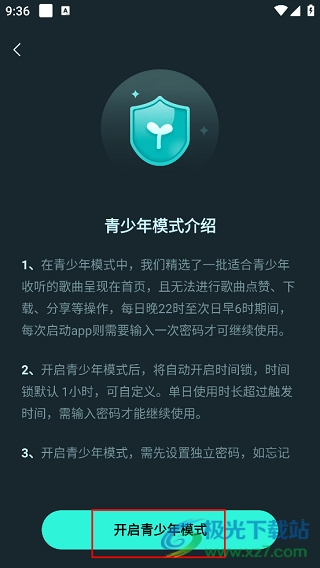 4、然后在打开的新窗口中,介绍了青少年模式,并点击下方中的“开启青少年模式”按钮。