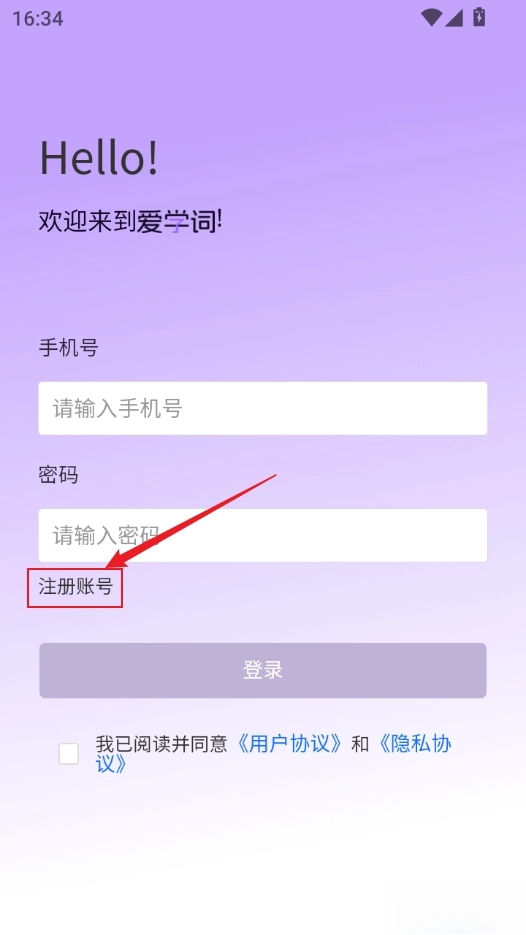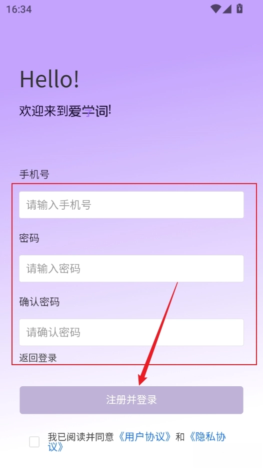 3、输入手机号密码注册,然后返回登录