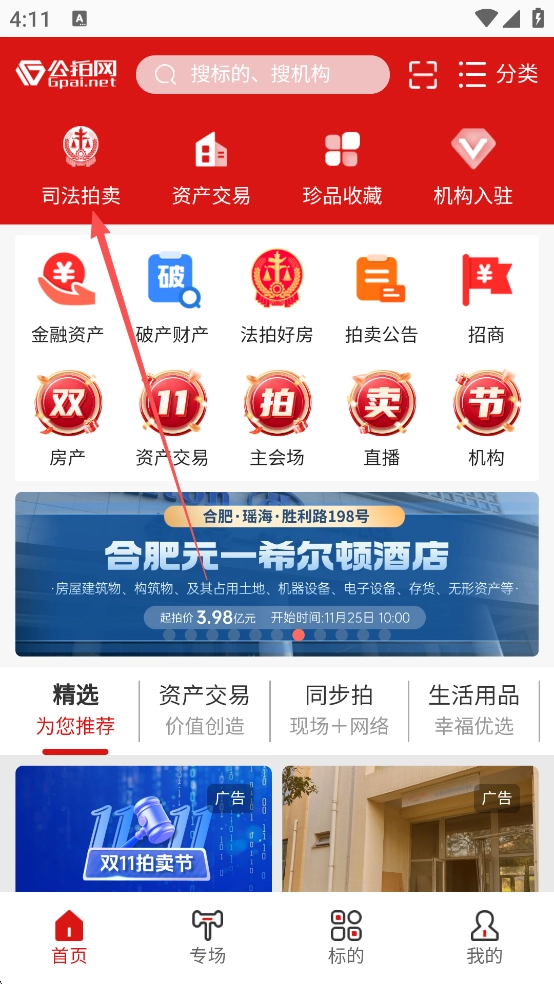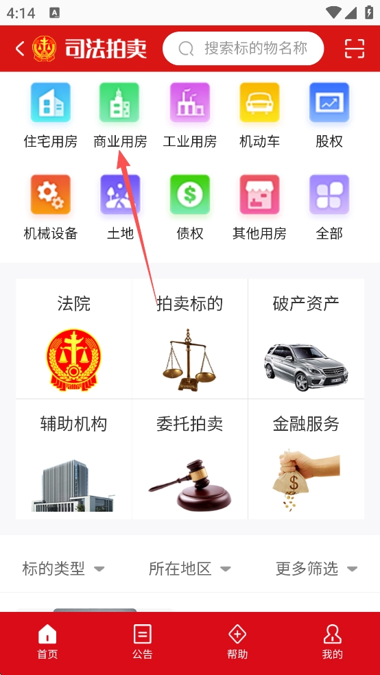 1、启动软件,完成注册操作后,点击界面上的【司法拍卖】选项