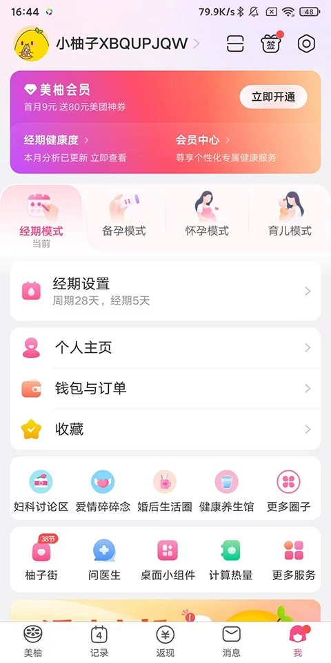 4、回到美柚主界面,检查经期记录是否已根据你重新设置的日期完成更新。