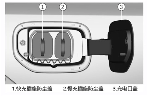 按压充电口盖使其弹开,拔出慢充插座防尘盖。