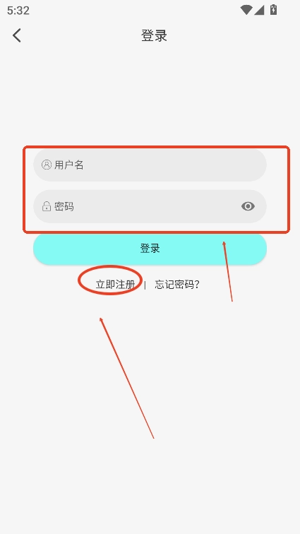 直接输入账号密码完成登录,没有账号,点击立即注册
