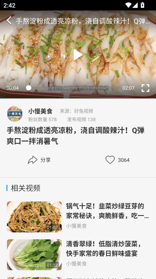 2、学习美食制作,点击相关视频进行学习,该软件因强大的个性化推荐,你喜欢美食,它将会推给你更多的美食视频。