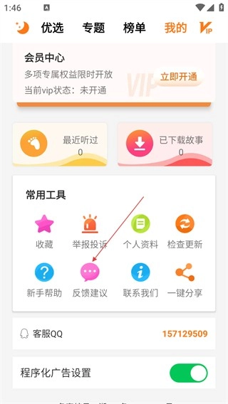2、在个人中心页面,点击【反馈建议】选项,进入反馈列表页面。