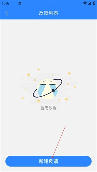 3、在反馈列表页面,点击【新建反馈】按钮,进入意见反馈界面。
