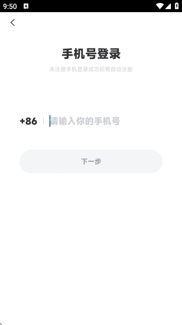 4、然后输入手机号,点击下一步,输入获取到的验证码自动完成账号的注册登录。
