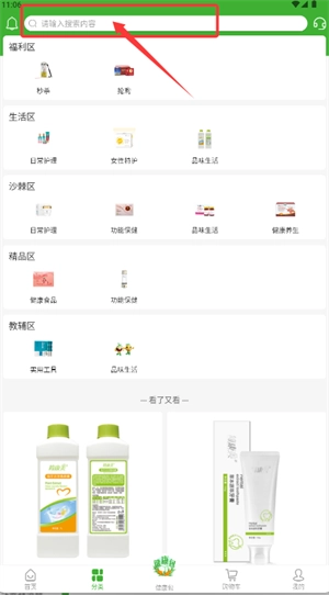 2、在主界面顶部搜索栏中,输入需要寻找的商品名称进行查找。