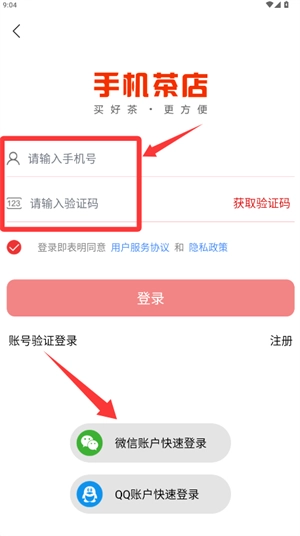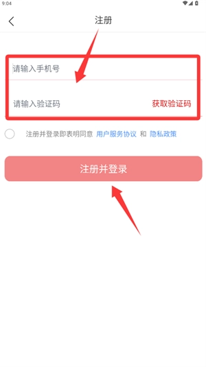 2、新用户输入手机号及验证码完成注册,老账户可直接登录。