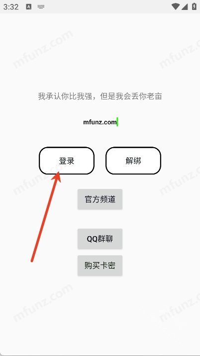 4、随便输入卡密并点击登录(比如:mfunz.com)