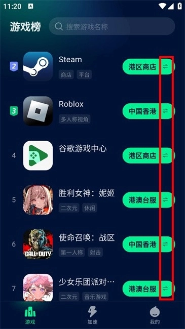1.登录软件后在【游戏】专区找到想要加速的游戏或是在【加速】专区找到想要加速已经的本地游戏