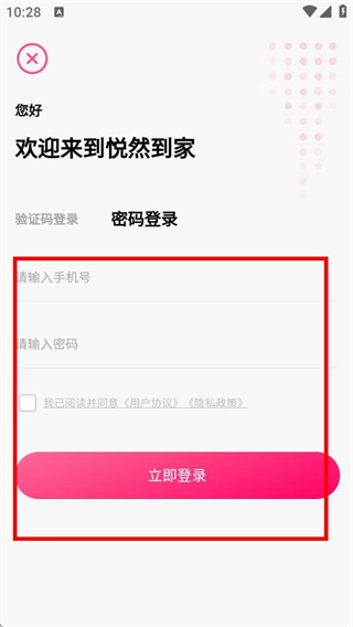 4、在密码登录界面,输入信息,勾选协议后点击立即登录,完成账号登录。