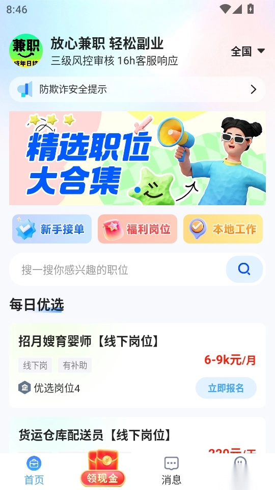 享受不错的兼职薪资保障,全部工资都是日结;