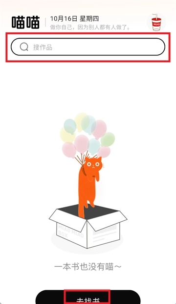 1、启动喵小乐应用,进入首页后,点击搜索框或者“找书”入口。