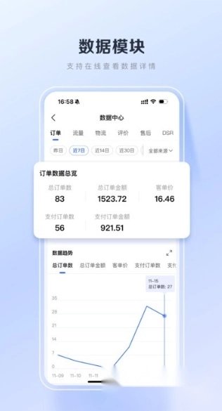 3、数据反馈实时化:实时同步店铺经营数据,包括销量、订单量、用户反馈等关键信息,让商家快速掌握经营动态,及时调整策略;