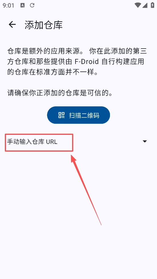 添加时需在F-Droid客户端中手动输入完整URL,并勾选“始终信任此存储库”以绕过签名验证。