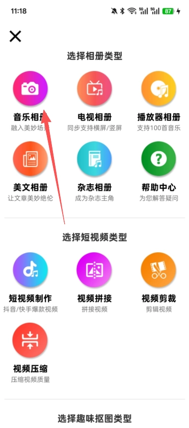 4、然后跟着接着点击音乐相册