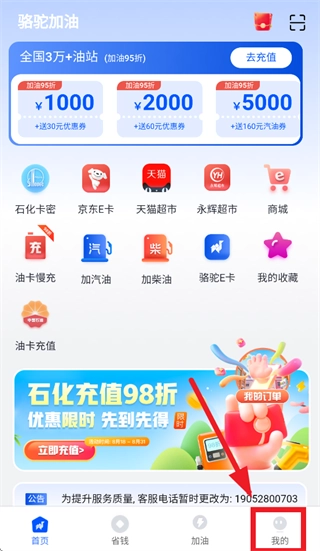骆驼加油正版是一款汽车加油类移动服务平台,设有首页、省钱、加油、我的等板块,涵盖了丰富的汽车加油功能与服务,能帮助用户在加油时更省钱,觉得不错的朋友可以尽快来使用哦。