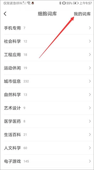 7、右上角“我的词库”,就可以查看自己已经添加的词库了