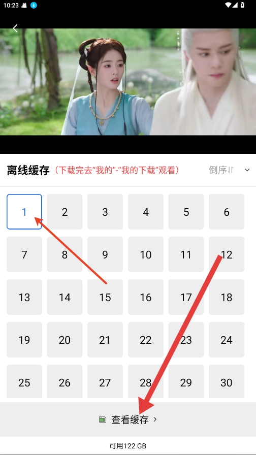 2、接着点击播放界面的“”按钮,根据需求选择好集数。