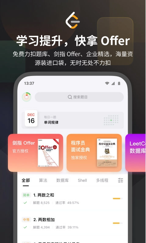 【刷题解】 随时随地,拿出手机“刷刷刷”就能学习算法与数据结构。把碎片化时间用在提升职业能力上,助你面试更有底气、技术更有深度、职级稳步提升!