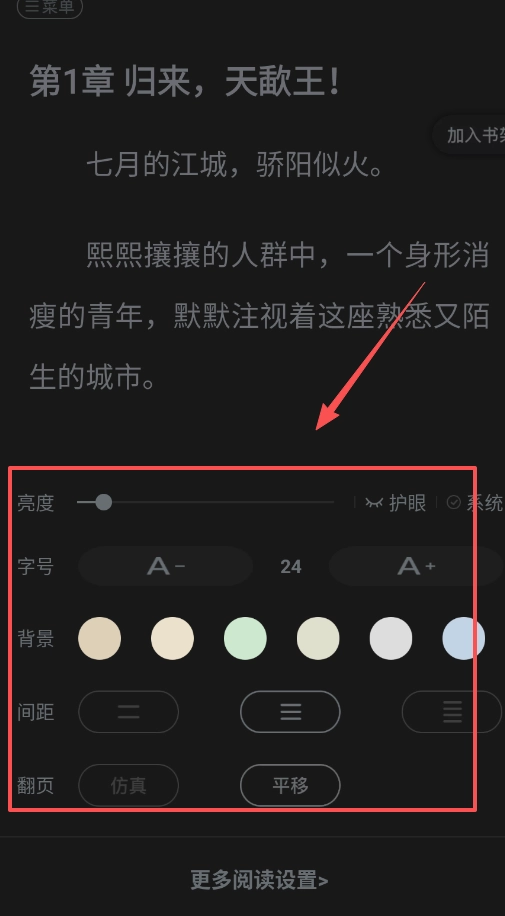 4、阅读设置选项允许用户自由调整界面背景和字体样式,打造最符合个人喜好的阅读环境,让您畅享无阻阅读乐趣。