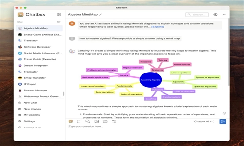 Chatbox是一款依托先进AI技术打造的多场景桌面应用工具,深度融合文档处理、代码编写与智能对话功能,为用户提供高效的信息处理解决方案。这款软件借助自然语言交互完成复杂任务处理,支持跨平台协作与本地化数据管理,能够满足学习、工作及生活场景的多样化需求。