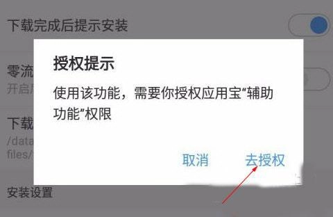 3、这时候打开省心装需要对应用宝进行授权处理,点击“去授权”