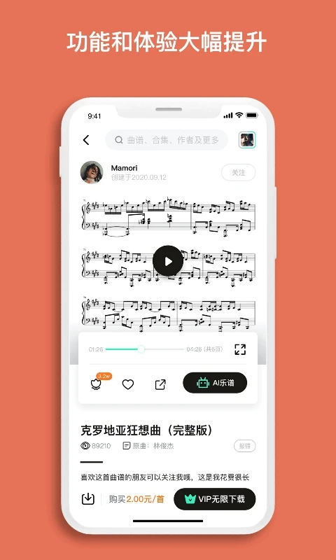 首页分区清晰,乐谱按难度、风格、作曲家多重标签归类,想找哪首一搜即达。