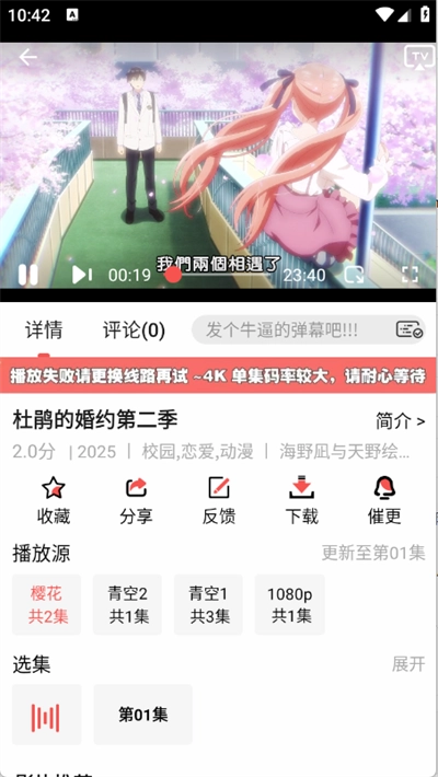 6、用户找到并点开想看的动漫就可以播放了,可以进行收藏、分享以及。