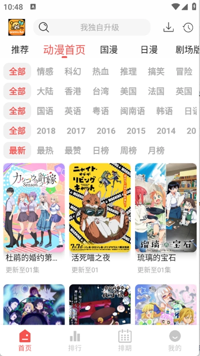 2、进入首页顶部栏中包含了很多的动漫,日漫、韩漫以及国产动漫;