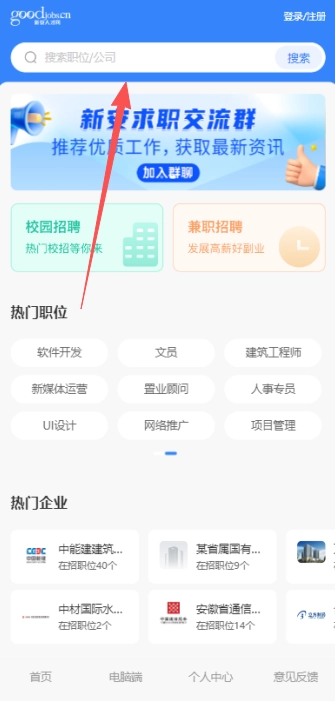 1、首先我们进入到新安人才网之中,在主界面搜索自己心仪的职位或者公司。