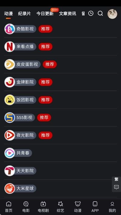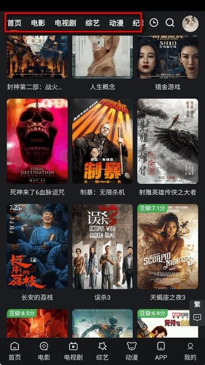 1、打开追影猫软件进入首页,上方有许多分类。