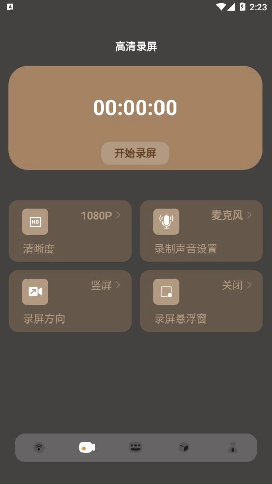 3、点击高清录屏去开启录屏操作,清晰度可以选择,还可以选择屏幕方向。