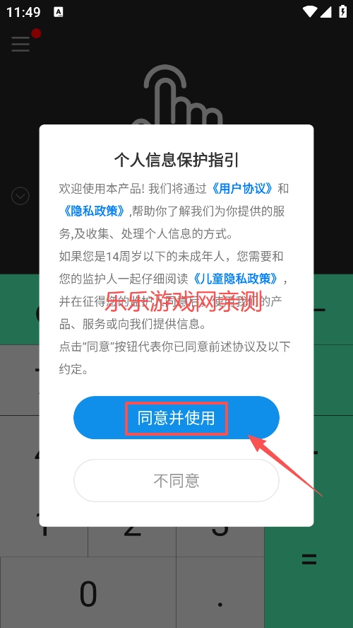 1、打开应用后,在个人信息保护页面选择同意并使用选项。