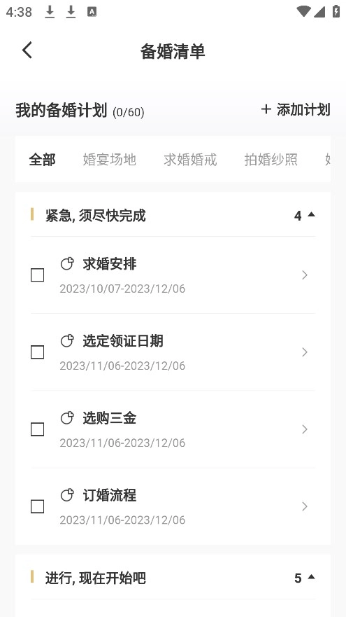3、进入备婚清单可添加婚礼需要进行的流程;
