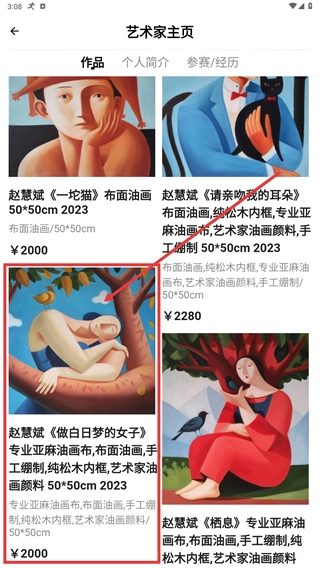2、在艺术家主页,选择目标作品(如《做白日梦的女子》),进入作品详情页。