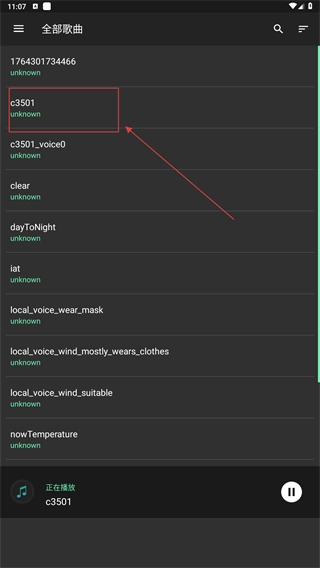 1、在完整的歌曲列表里,找到你想播放的目标曲目(比如【c3501】),点击它就能进入该曲目的播放页面。