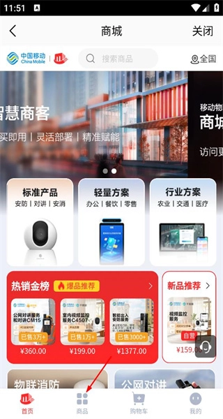 2、进入和目商城页面,含标准产品等分类,展示热销金榜等内容,选择对应商品板块查看详情。