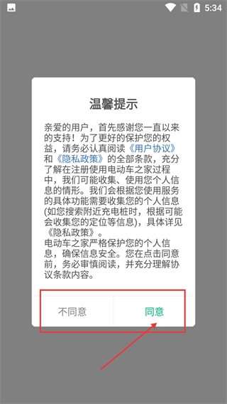 1、仔细阅读温馨提示中的【用户协议】和【隐私政策】条款,确认无误后点击【同意】按钮,就能进入应用开展后续操作。