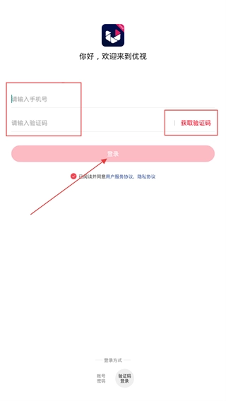 4、也可切换“验证码登录”,输入手机号,点击【获取验证码】,填入后完成登录,进入应用功能页。