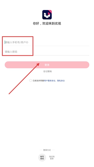 3、在登录页,可选择“账号密码”方式,输入手机号/商户ID与密码,勾选协议后点击【登录】。