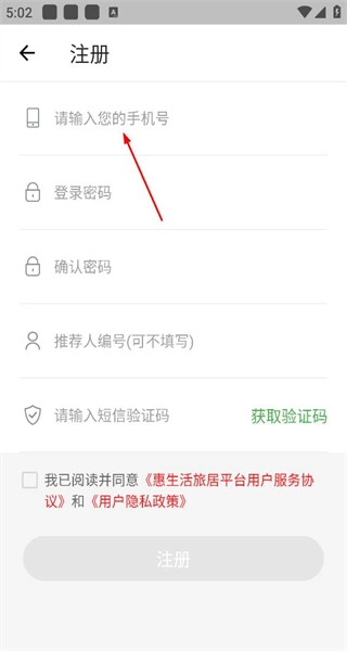 4、进入注册页面,显示手机号登录密码等输入项,准备填写信息完成该平台的注册操作。