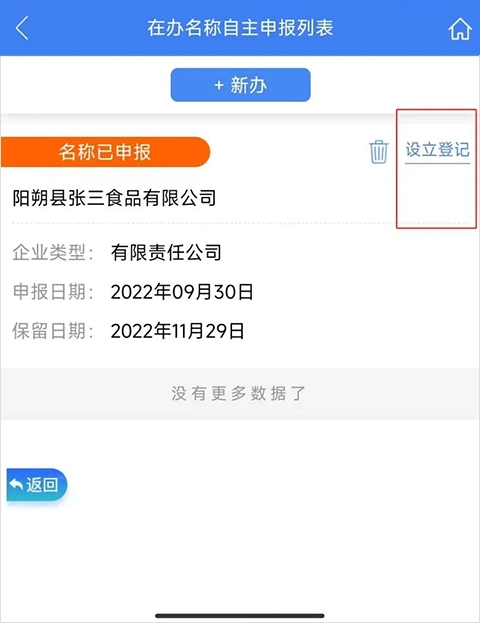 4、完成名称自主申报后,点击右上角的“设立登记”按钮,即可进入设立流程。