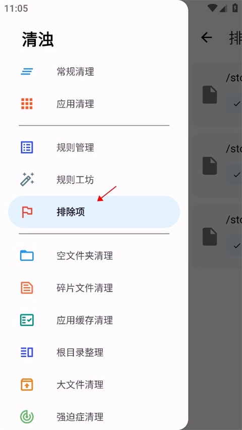 3、有时我们不想清理掉需要用到的文件,可点击服务功能找到排除项。