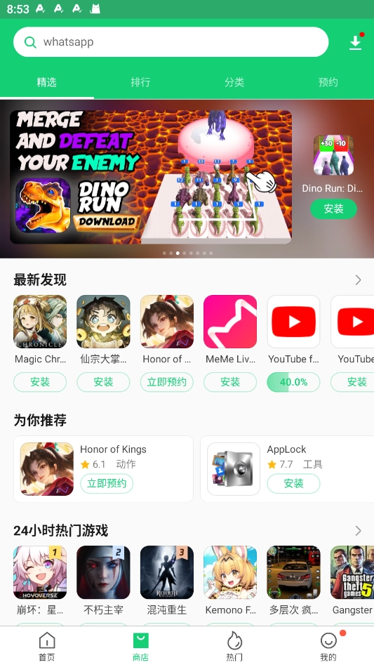 3.这里是分类页面,不同分类下涵盖了已上线的以及热门的应用。