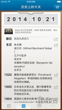 3、和不少日历类应用类似,设有“历史上的今天”“历史上的明天”这类界面,内容涵盖名人诞辰以及全球范围内发生的重大事件。