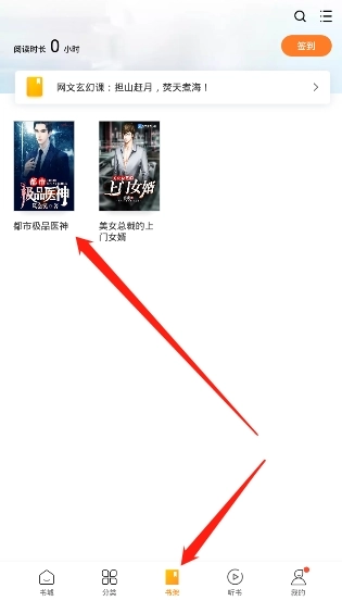 2、在主界面点击“书架”,选择自己想要阅读的书籍;