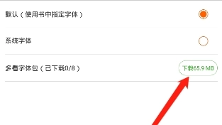 5、进入字体选择页面,点击“多看字体包”并选择你喜欢的字体;
